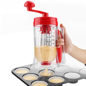 Aparat manual pentru amestecarea aluatului, cu dozator pentru clatite si prajituri