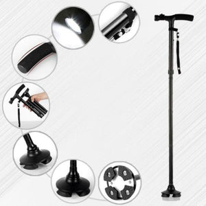 Confectionat din otel, este foarte usor si indemanatic, este pliabil si reglabil, are capat cu 3 puncte de sprijin pentru o siguranta sporita si lanterna LED pentru a lumina zona de mers.