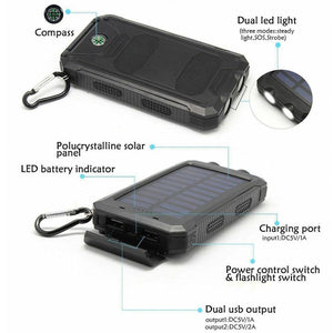 electronice. Intrare USB DC 5V/1.5A pentru incarcarea rapida a bancii de energie solara in sine. Permitandu-va sa incarcati doua dispozitive in acelasi timp, incarcatorul