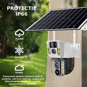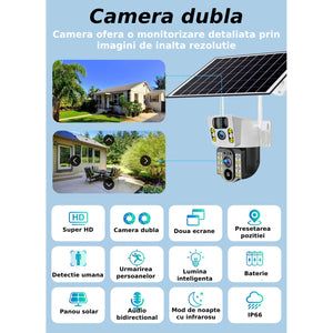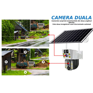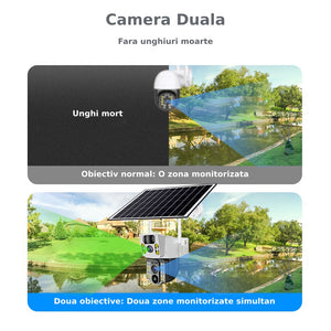 Camera de supraveghere 2in 1 cu Panou Solar inclus , 5MP, Portabila, Acumulator incorporat 12000mah, Rotire automata, Micro SD, Supravegheaza doua zone in acealasi timp