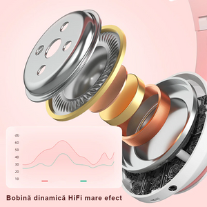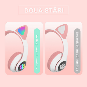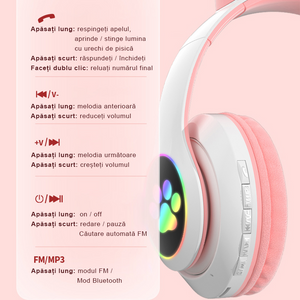 Casti wireless pliabile cu urechi de pisica iluminate LED, Bluetooth 5.0, Bass Stereo