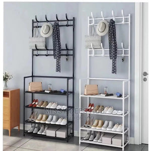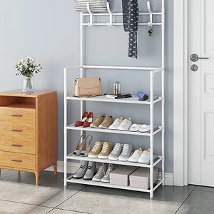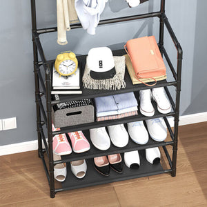 Cuier haine cu suport pantofi, 4 rafturi, plastic
