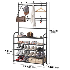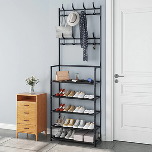 Cuier haine cu suport pantofi, 5 rafturi, plastic