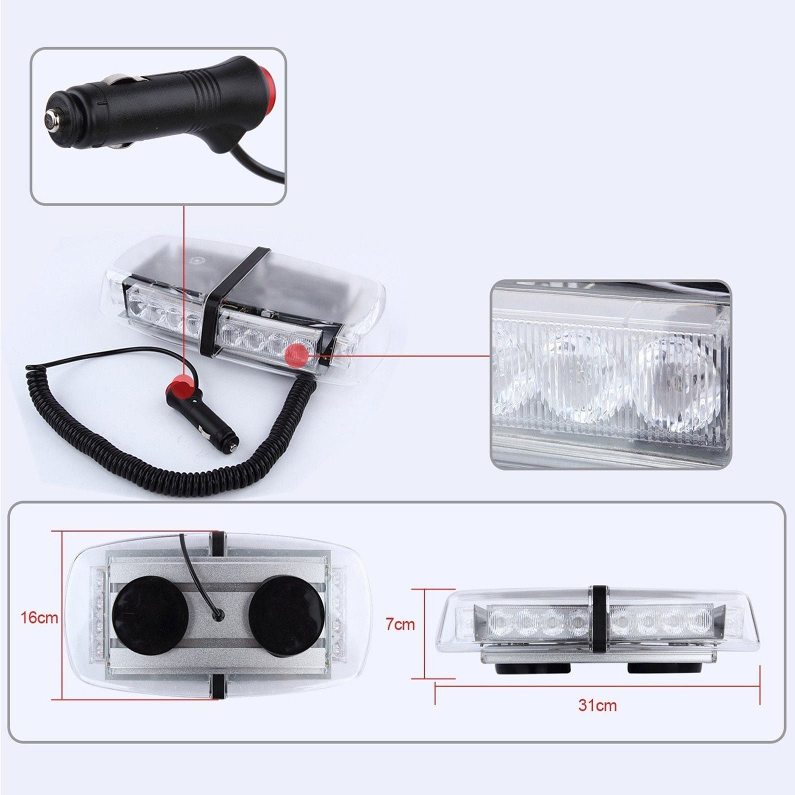 Girofar LED Cu Magnet, 12V, 24W, IP65, 31x16x7 cm