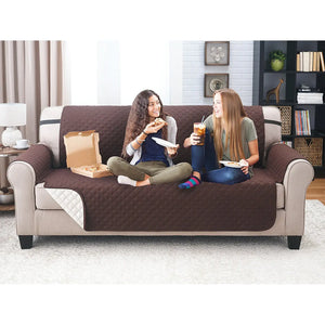Patura-protectie canapea cu fata dubla, una din fete este maro inchis iar cealalta are culoarea alb fides. Protejeaza canapeaua impotriva murdariei. Se recomanda in special celor care au caini sau pisici. Incepand de acum preferatul dumneavoastra poate dormi linistit pe canapea fara a o murdari. Nu doar usureaza pastrarea curata a noii canapele dar de asemenea aduce intr-o forma noua canapeaua mai veche care eventual este uzata.