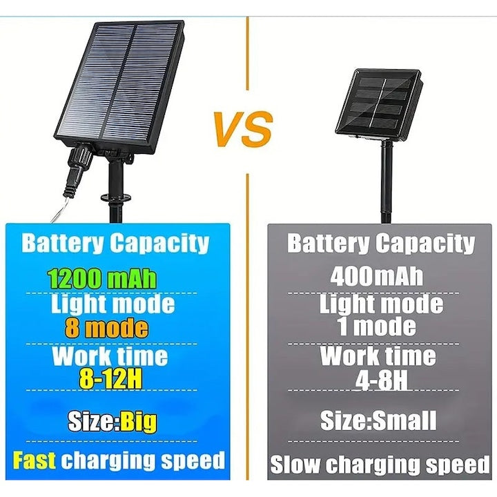 Instalatie Craciun Solara, 500 Led-uri, 50 metri, Panou solar mare, Telecomanda, 1200mAh, Alb Rece