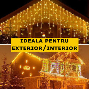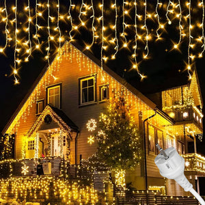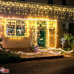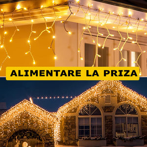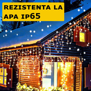 Instalatie Craciun Turturi 20 M, 500 Led-uri, Pentru Casa / Gradina / Gard, Cu 1 Joc De Lumini, Franjuri Curgatoare, Exterior/Interior, Fir Alb, Interconectabila, Rezistenta La Apa, Alb Cald