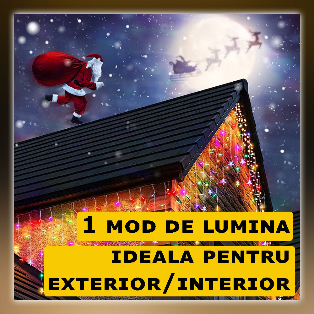 Instalatie Craciun Turturi 20M, 500 Led-uri, Pentru Casa / Gradina / Gard, Cu 1 Joc De Lumini, Franjuri Curgatoare, Exterior/Interior, Fir Alb, Interconectabila, Rezistenta La Apa, Multicolor