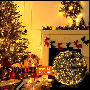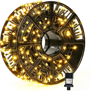 Instalatie de Craciun Liniara Interior/Exterior, Rola 100m, 8 Jocuri de Lumini, Alb Cald, Fir Negru