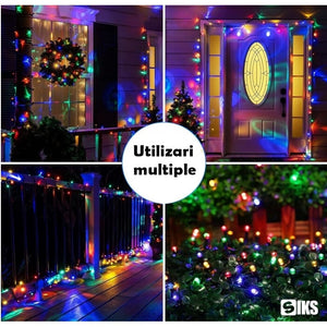 Instalatie de craciun liniara interior/exterior, rola 100m, 8 jocuri de lumini, Multicolor