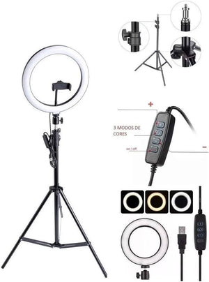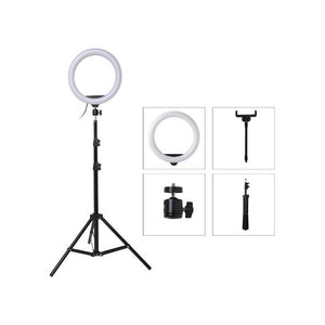 - Tip produs: Lampa circulara cu suport telefon si stativ reglabil;
