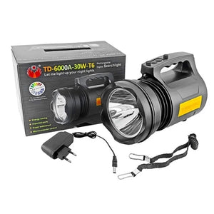 Datorita bateriei sale reincarcabile de 6000 mAh si a LED-ului sau, Lanterna Profesionala cu LED de 30W este un dispozitiv puternic, lumina sa parcurgand cu usurinta 500m.