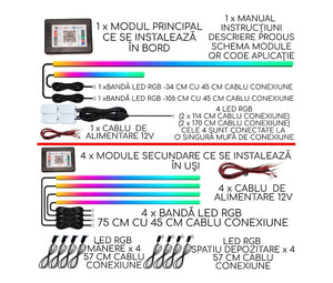 Kit iluminare ambientala 18 piese LED RGB, Bluetooth, aplicatie telefon, senzor muzica, multicolor