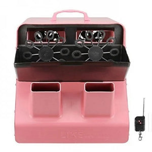Masina de facut baloane, telecomanda wireless, produce baloane de sapun ce vor fi lansate cu ajutorul jetului de aer generat de cele doua ventilatoare puternice, impreuna cu lichidul special aflat in cuva aparatului creeaza o atmosfera spectaculoasa si un efect feeric la nunti, discoteci, baruri, restaurante, evenimente diverse.