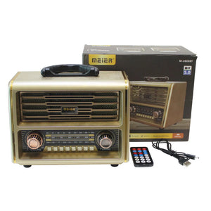 Meier M-2028BT Retro Fm Am Sw 3 Bande Vintage Retro Radio Radio Reîncărcabilă Cu Funcție Bt Wireless Usb Sd Tf Mp3 Player Lemn