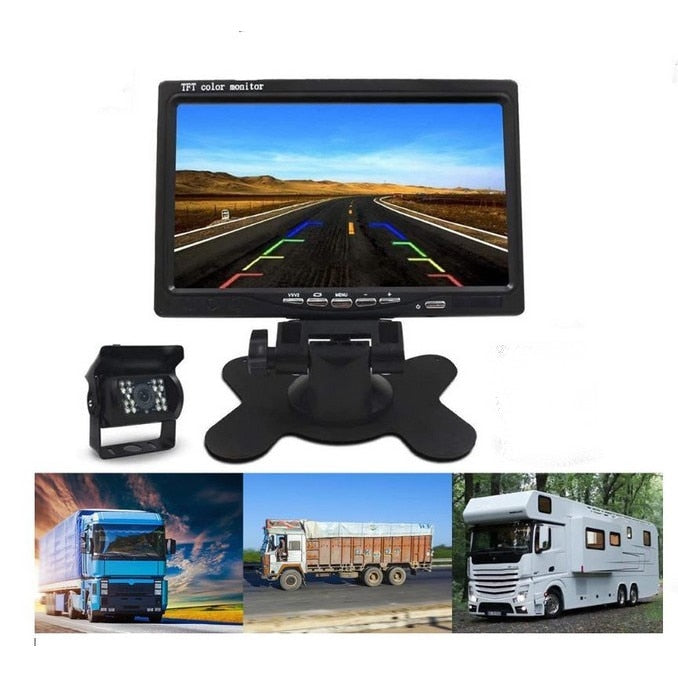 Monitor 7 inchi LCD TFT Color pentru vizualizare Camera spate (marsarier) Compatibil cu Camere video supraveghere, DVR, VCD / DVD / GPS Redare: 16:9. Intrare Video: 2 x RCA ( 1 x Video, 1 x audio / 2 x video ) Full Color Display Consum redus 12 V