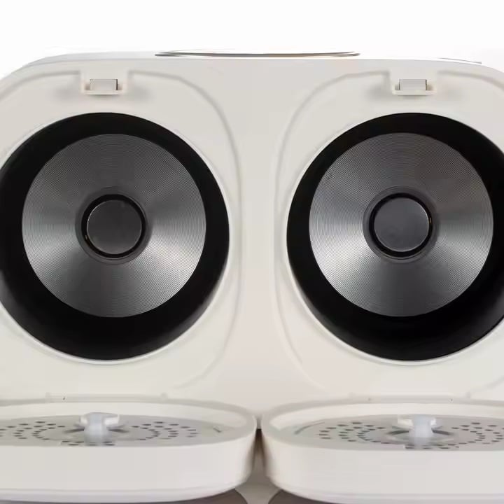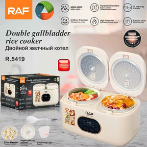 1. Camere de gătit duble: Aparatul vine cu două oale de gătit separate, permițându-vă să gătiți diferite feluri de mâncare simultan fără a amesteca arome, făcând pregătirea mesei mai eficientă.