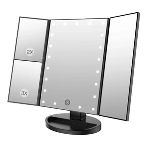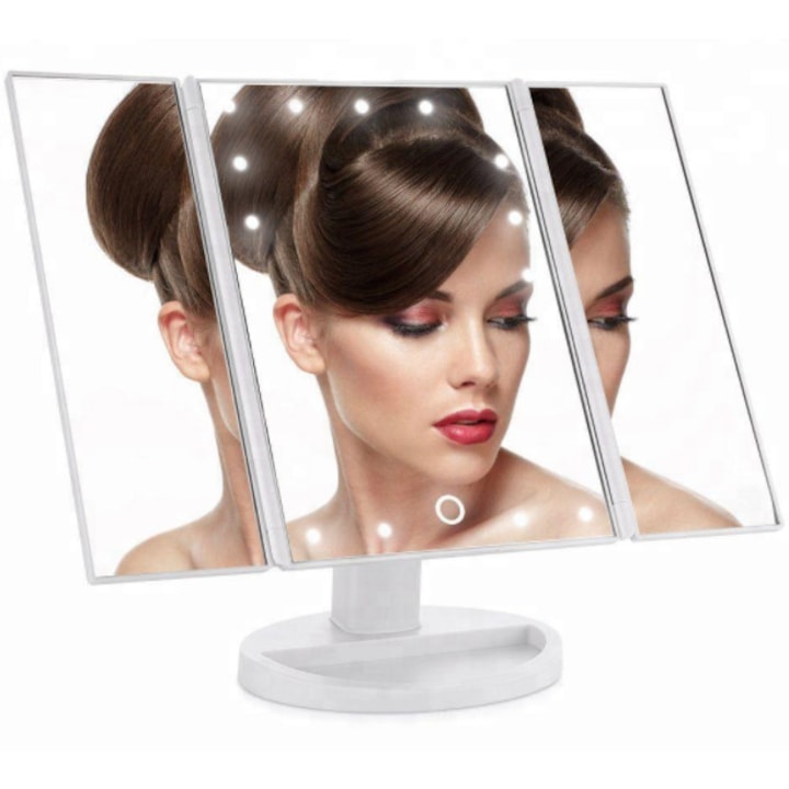 Oglinda cosmetica RedSun RS-L3011 este foarte utila pentru aplicarea machiajului, pieptanarea parului sau pensarea sprancenelor si este realizata intr-un design decorativ atractiv. Realizata din plastic de calitate superioara cu 24 lumini LED de lumina alba, control tactil si rotatie de 180º.