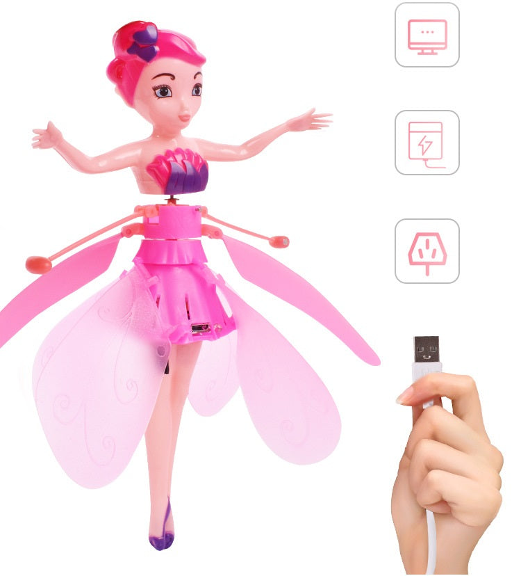 Cu aripile montate si incarcata papusa se porneste de la buton si papusa incepe sa zboare ridicandu-se in aer. Cand incepe sa se lase in jos se pune mana sub ea si papusa se ridica (acesta este principiul de functionare). Papusa nu vine si nu contine niciun suport si nu are nevoie de nicio baterie ca sa incarce avand un acumulator inclus.