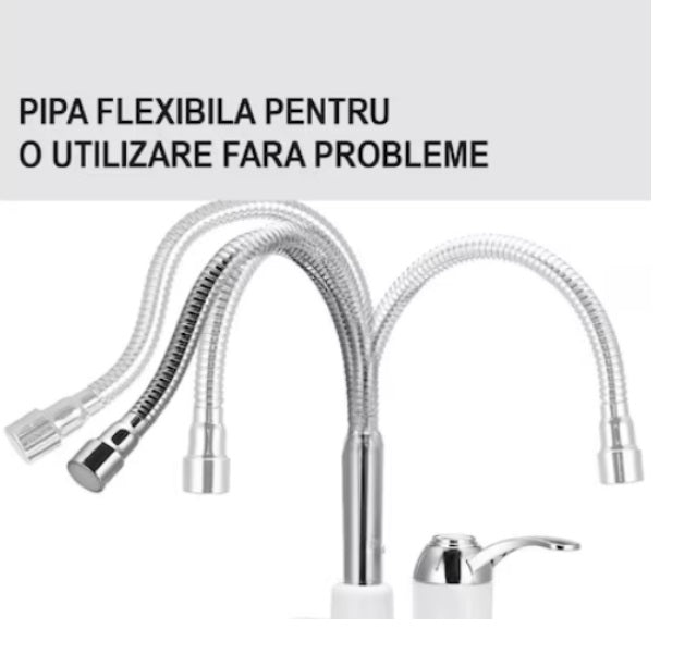 Ultimul model de robinet electric flexibil pentru incalzit apa are afisaj digital LCD si o putere de 3000W. Acesta are un sistem senzational prin care incalzeste apa instantaneu, de la 30°C pana la 60°C.