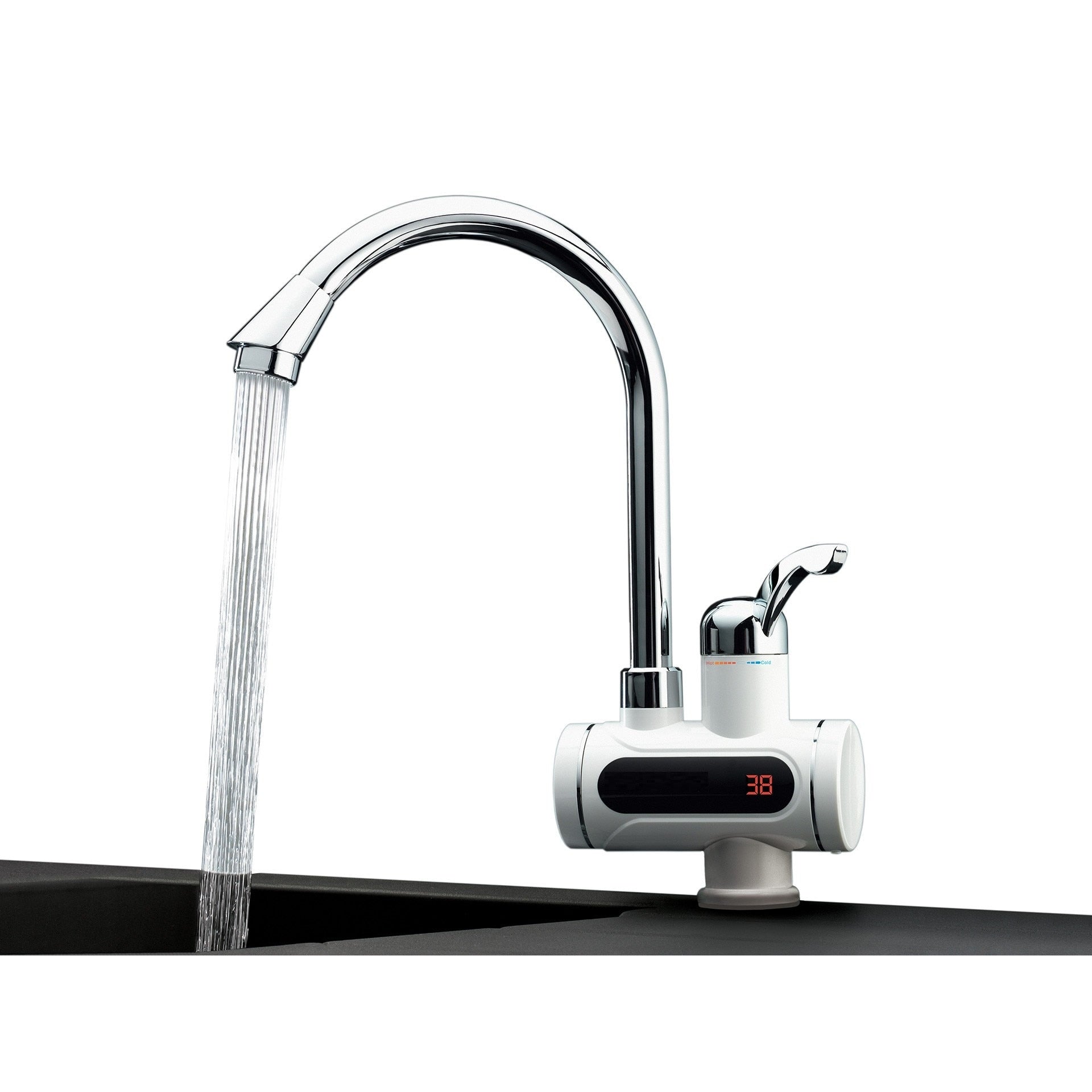 Noul robinet electric pentru incalzirea apei are 3000W + digital LCD si un sistem revolutionar care incalzeste apa foarte rapid la o temperatura de 60°C. Aparatele standard de incalzire a apei au nevoie de mai mult timp pentru a colecta cantitatea potrivita de apa fierbinte. Robinetul nu necesita o asteptare lunga si iritanta - veti obtine apa fierbinte in doar 3 secunde!
