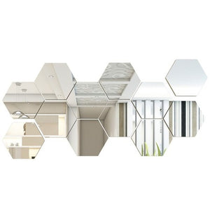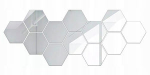 Set 12 autocolante de perete tip oglinda design Hexagon 126x110x63 mm, Argintiu