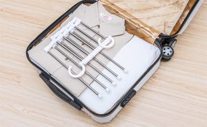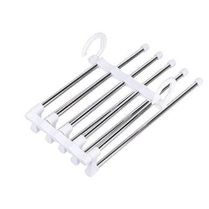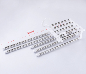 Bratele sale extinse va permit sa va vedeti cu usurinta garderoba fara sa rupeti garderoba. Un cuier este cel mai convenabil mod de a va pastra pantalonii – nu vor fi zdrobiti. Poate fi „pliat”, ceea ce va permite sa transportati pantalonii intr-un valiza impreuna cu un cuier. Fabricat din fire rezistente din plastic si otel – va servi de mai multi ani. Lungime cu brate pliate: 33 cm; cu 47 cm ridicate.