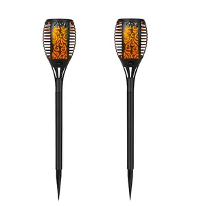 Ledurile sunt programate cu un algoritm inteligent ce le declanseaza la o diferenta de cateva ms. in perechi, astfel rezulta un efect de flacara care arde, avand lumina calda, ce imita perfect culoarea unei flacari cu fitil, real. Torta solara cu LED este prevazuta cu tarus pentru montarea in pamant. Lampa dispune de buton ON/OFF.