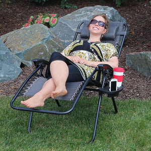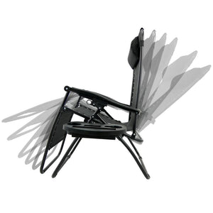 Scaun tip Sezlong Pliabil Gravitatie Zero pentru Terasa, Gradina sau Plaja , Tetiera, Suport Bauturi, Reglabil, Negru