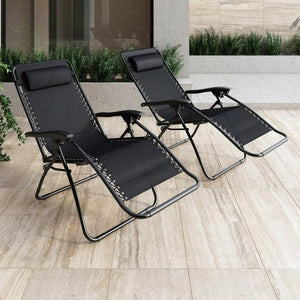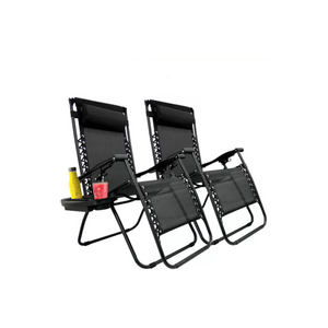 set 2xScaune Tip Sezlong Pliabil Gravitatie Zero Pentru Terasa, Gradina Sau Plaja , Tetiera, Suport Bauturi, Reglabil, Negru