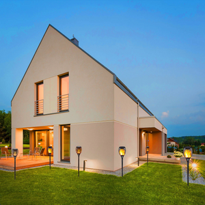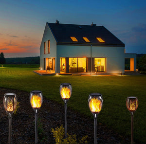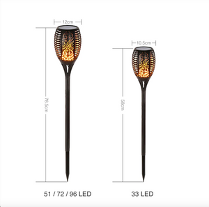 Ledurile sunt programate cu un algoritm inteligent ce le declanseaza la o diferenta de cateva ms. in perechi, astfel rezulta un efect de flacara care arde, avand lumina calda, ce imita perfect culoarea unei flacari cu fitil, real. Torta solara cu LED este prevazuta cu tarus pentru montarea in pamant. Lampa dispune de buton ON/OFF.