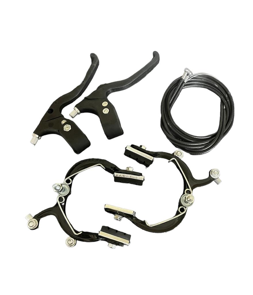 Set potcoava complect sistem franare, fata-spate ,include- cabluri de frana cu camasi ,manete din plastic , potcoave cu saboti pe filet