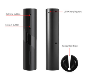 Tirbusonul electric este format din burghiu, carcasa din aluminiu, cu o parte transparenta ce inconjoara mecanismul cu tirbuson, care face ca intreg procesul de indepartare a dopului sa fie complet vizibil. Spre deosebire de tirbusonul clasic, acest tirbuson este plasat in structura interioara a dispozitivului si nu va iesi din interiorul acestuia in timpul utilizarii. Cu o simpla apasare a butonului de silicon, tirbusonul electric va indeparta cu usurinta dopul in doar 6-8 secunde, fara a sparge pluta sau fara a exista riscul de a faramita dopul. In plus, in pachet se gaseste si un cutit pentru taierea foliei de pe sticla.