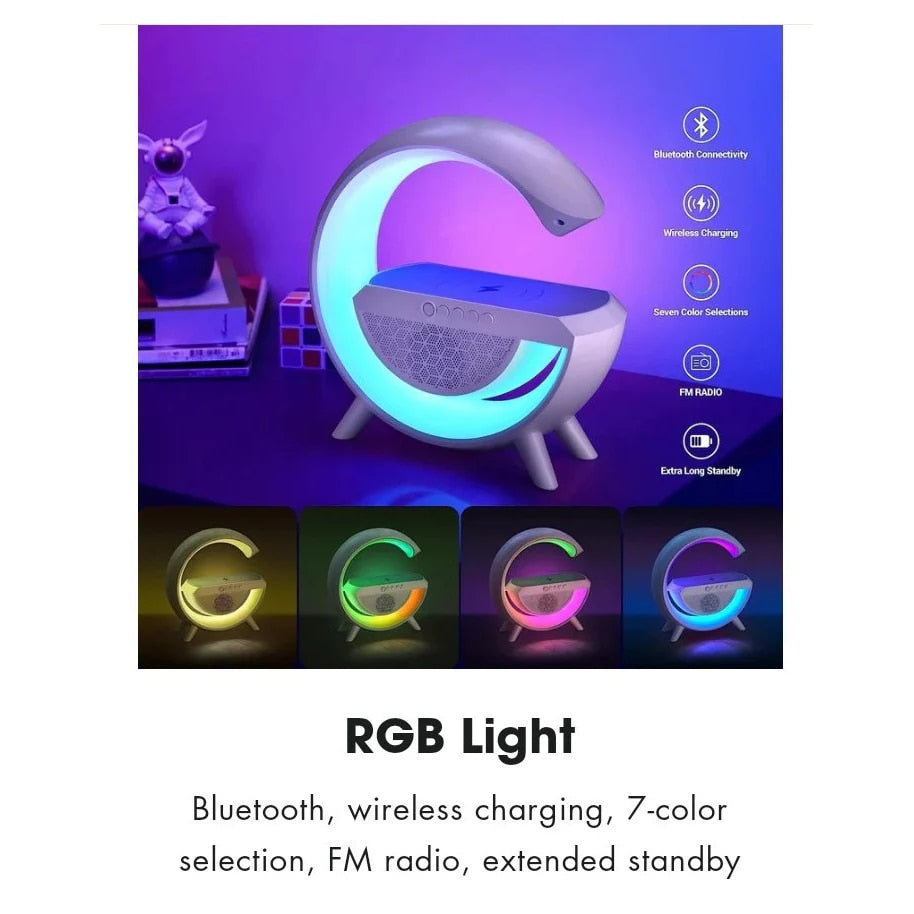 Standul de incarcare wireless cu iluminare RGB este partenerul perfect pentru nevoile dvs. de muzica si incarcare. Acest difuzor multifunctional nu numai ca se conecteaza perfect prin Bluetooth la dispozitivele dvs., dar are si radio FM, slot pentru card TF si intrare AUX pentru optiuni de conectivitate versatile.