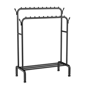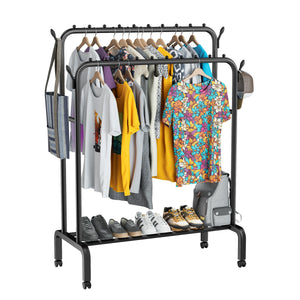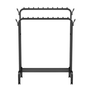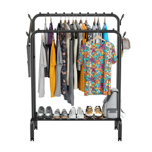 Suport dublu pentru haine pe roti, 4 carlige , 145x 96x 42 cm Negru