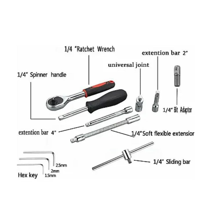 Trusa de 46 de piese include o gamă largă de dimensiuni de chei tubulare, astfel încât să poți face față diferitelor șuruburi și piulițe. Fie că lucrezi la proiecte de întreținere, reparații auto sau asamblări, vei avea la dispoziție cheile potrivite pentru a face lucrarea cu ușurință și precizie.