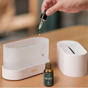 Umidificator de camera HUMID2, efect de flacara, difuzor ultrasonic aromaterapie, 190ml, alb si negru